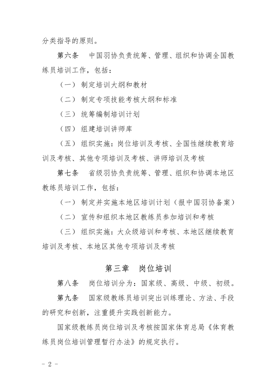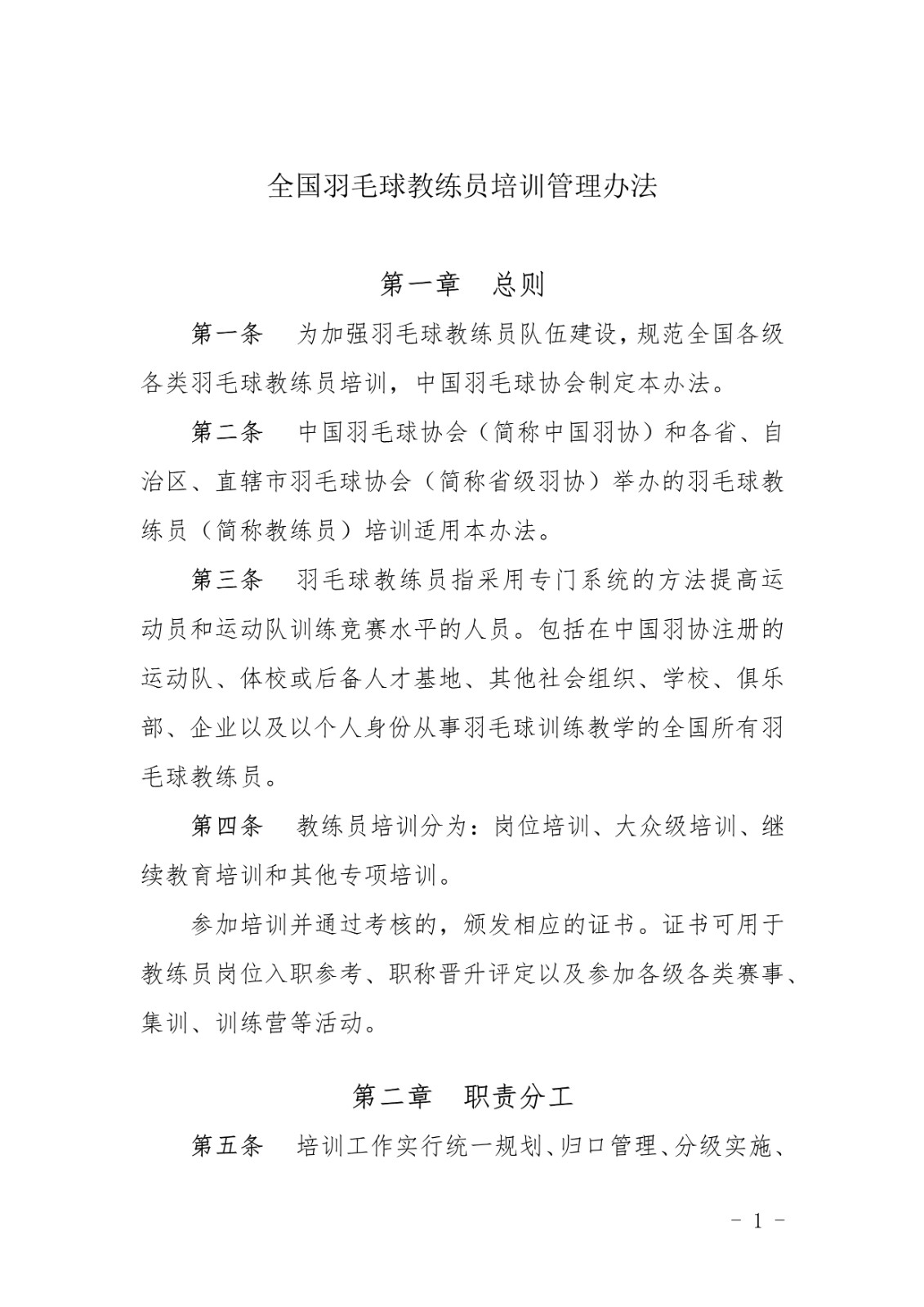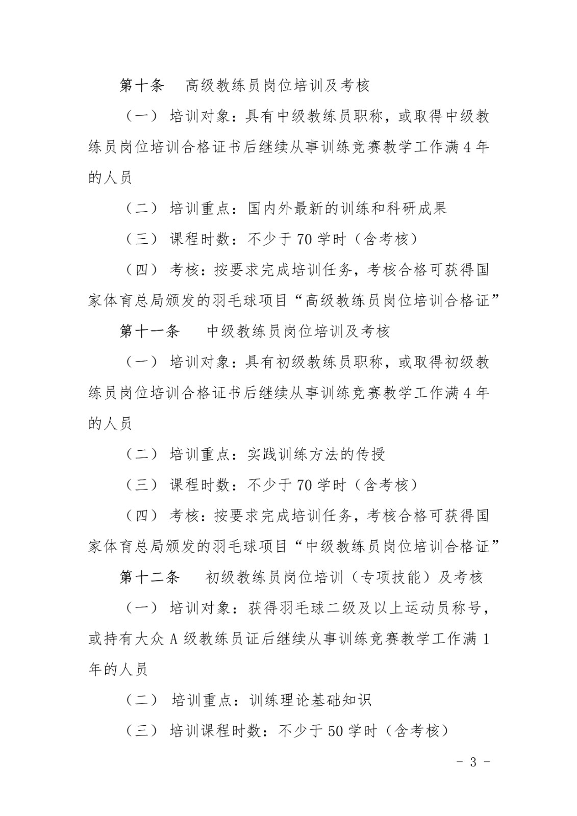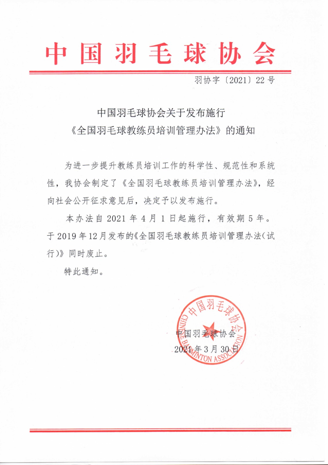 中国羽毛球协会关于发布施行《全国羽毛球教练员培训管理办法》的通知