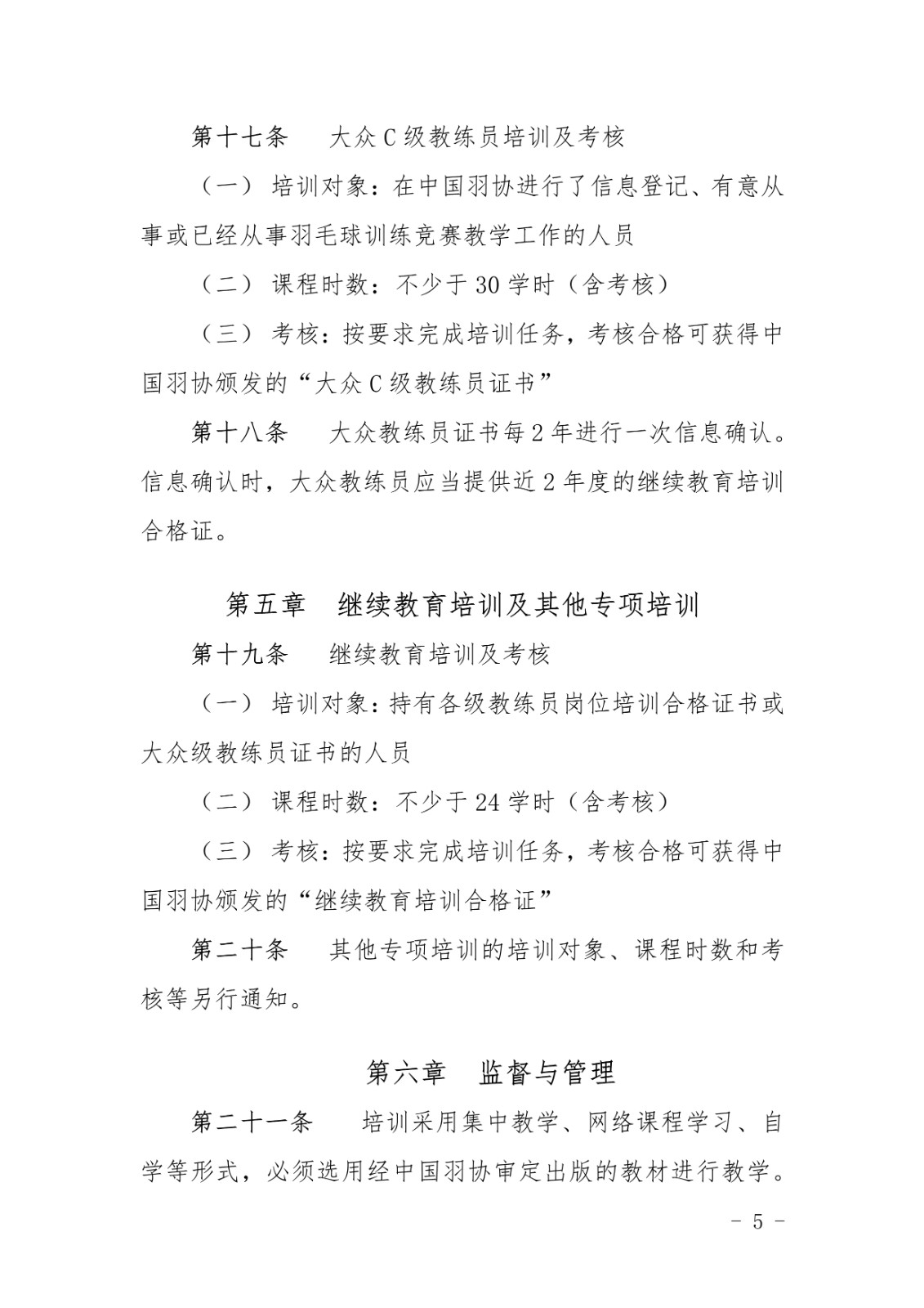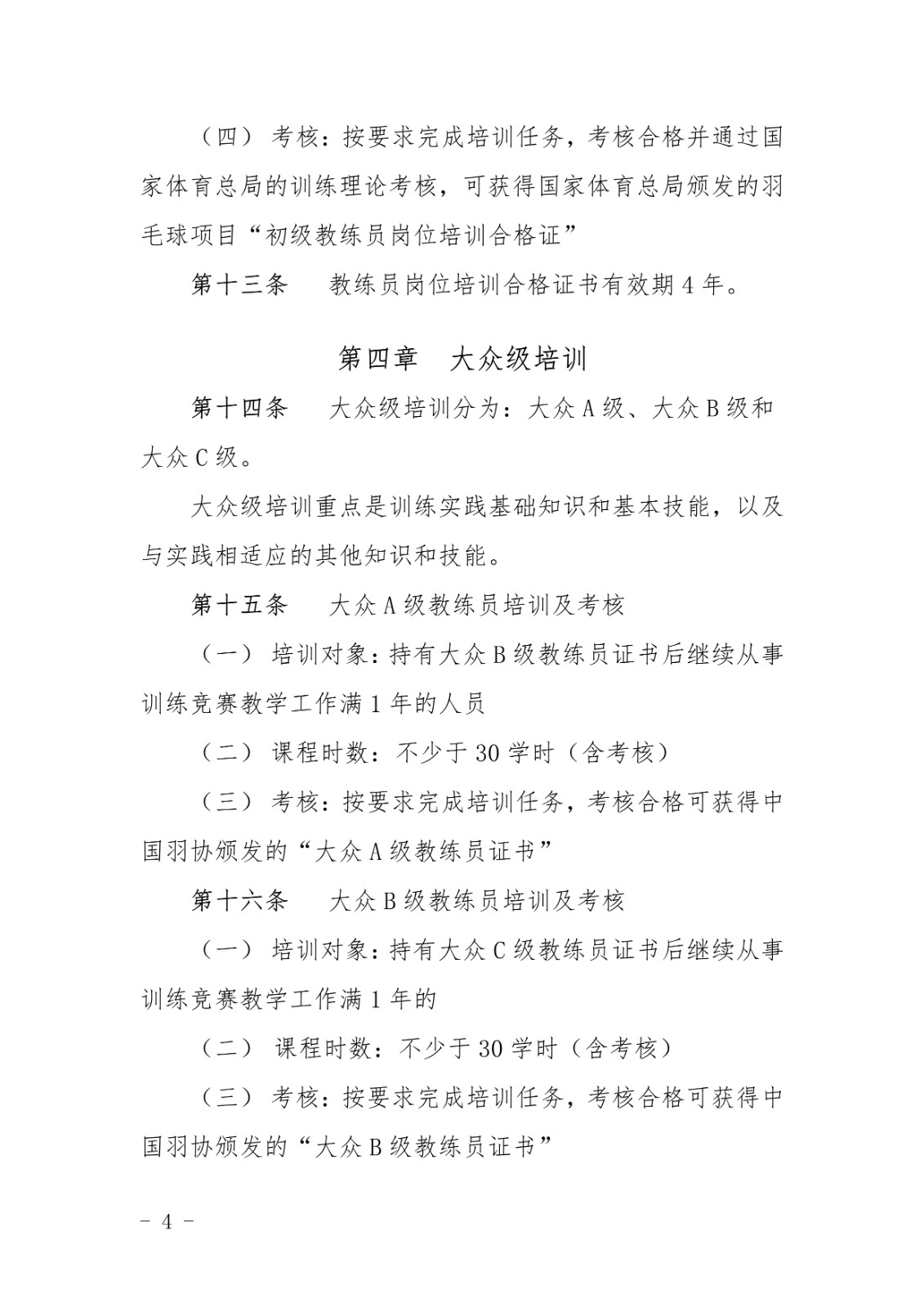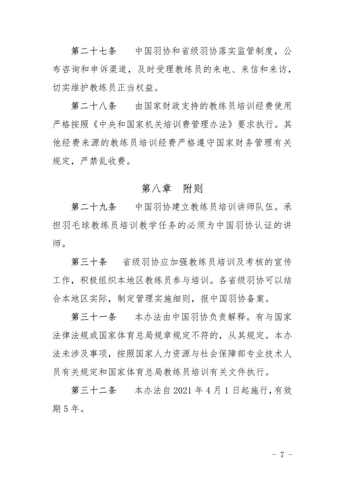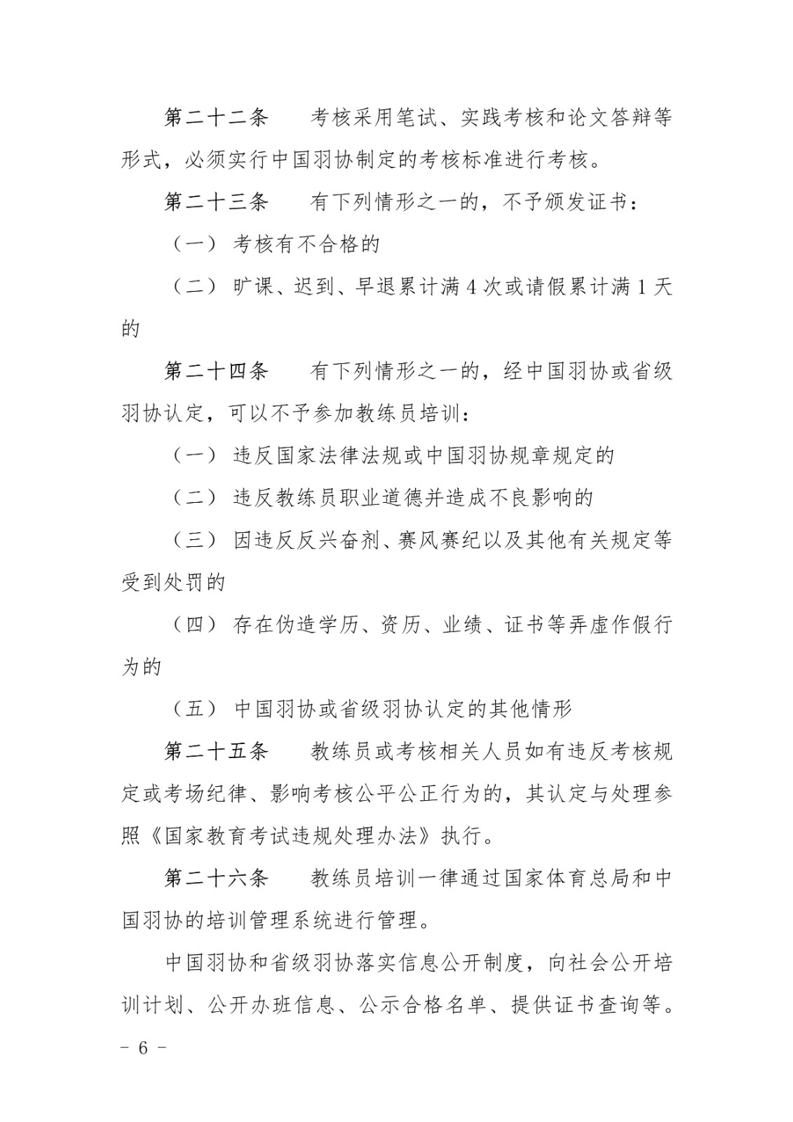 中国羽毛球协会关于发布施行《全国羽毛球教练员培训管理办法》的通知