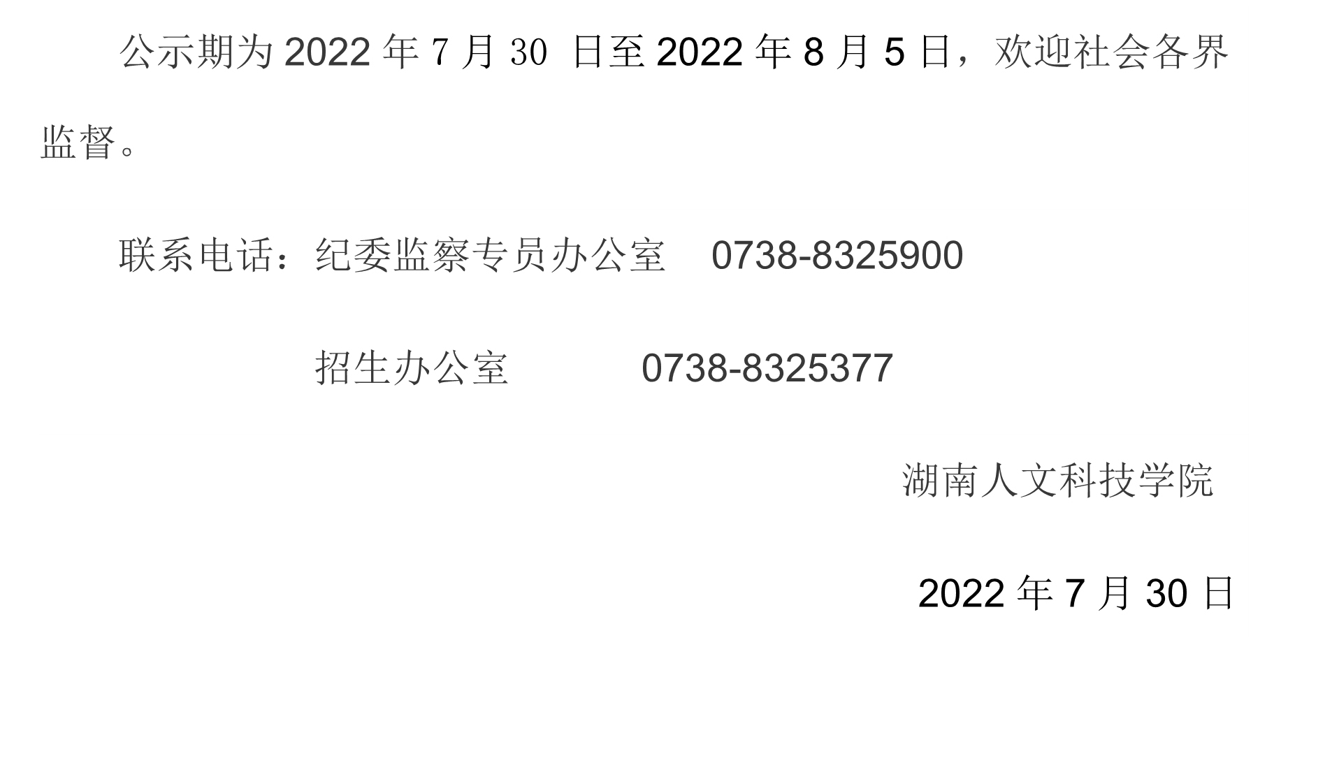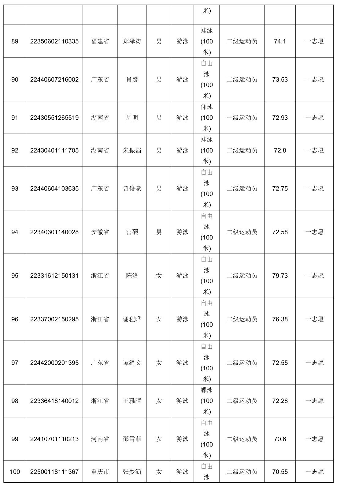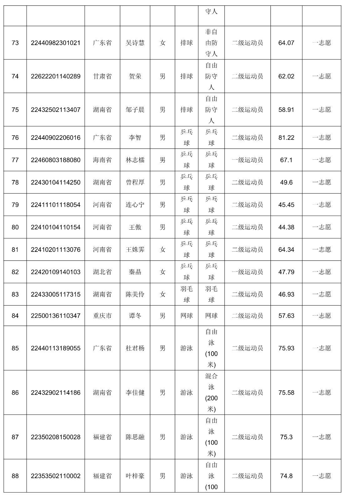 湖南人文科技学院2022年运动训练专业拟录取名单公示