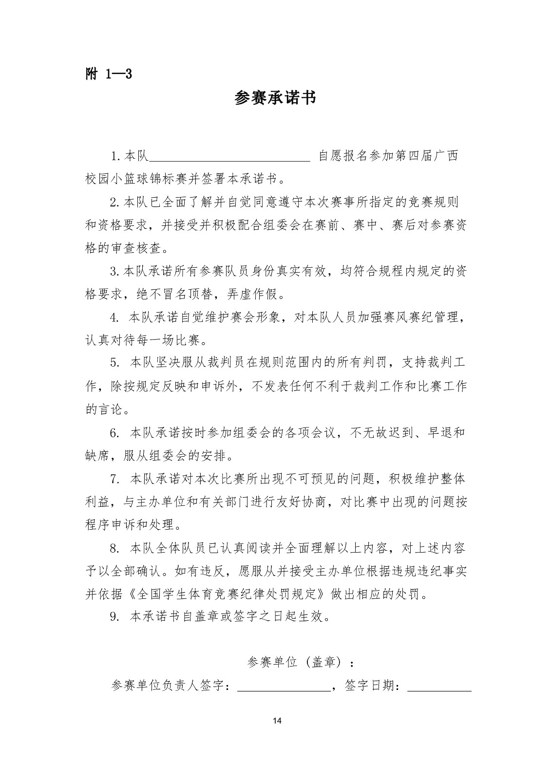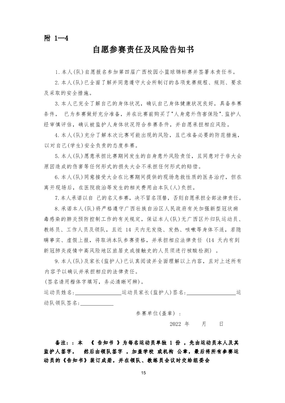 第四届广西校园小篮球锦标赛报名表&承诺书&风险告知书.docx